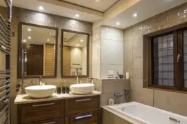 - Earthy Lumber Dressing Table: Introduce warmth with an earthy lumber dressing table, a key element in achieving a Scandinavian-inspired bathroom.