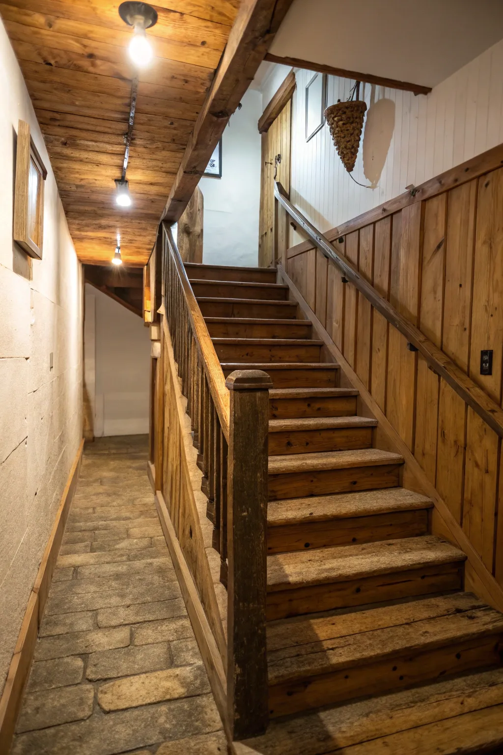 • Lumber Beam Ceiling Illumination: Illuminate your staircase with these unique lumber beam lights, effortlessly adding original charm.