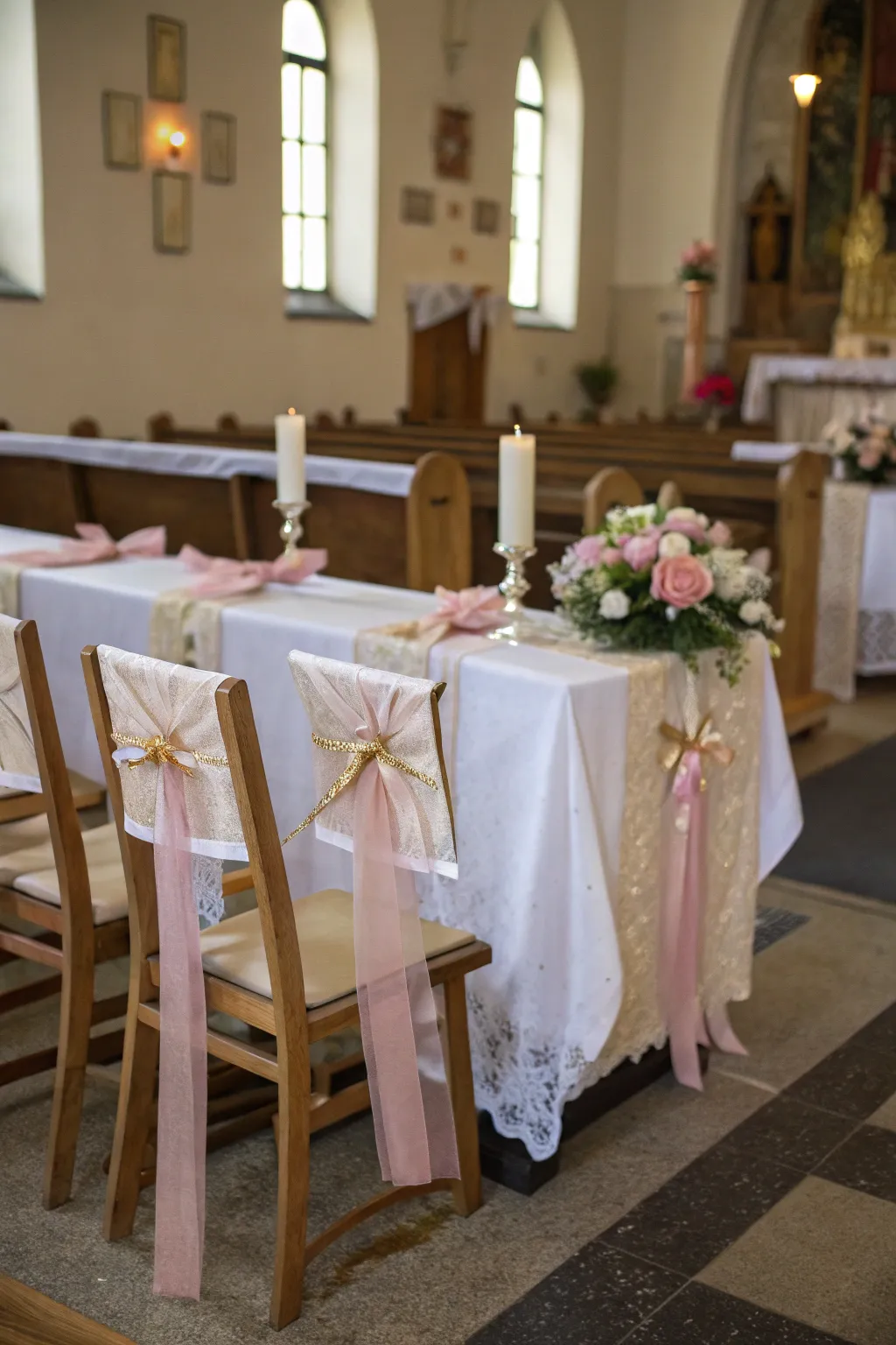 - Classy Chair Tie Ribbons: Dazzle up your church’s decor using classy chair ties for that luxe touch.