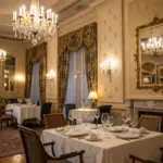 An elegant table arrangement showcasing gilt features and precious glass drinking vessels.