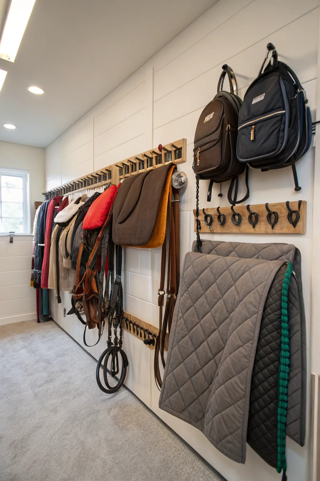 - Movable Mounted Holders: Hang tack and equipment safely using flexible holders that match your specific needs and aesthetic.