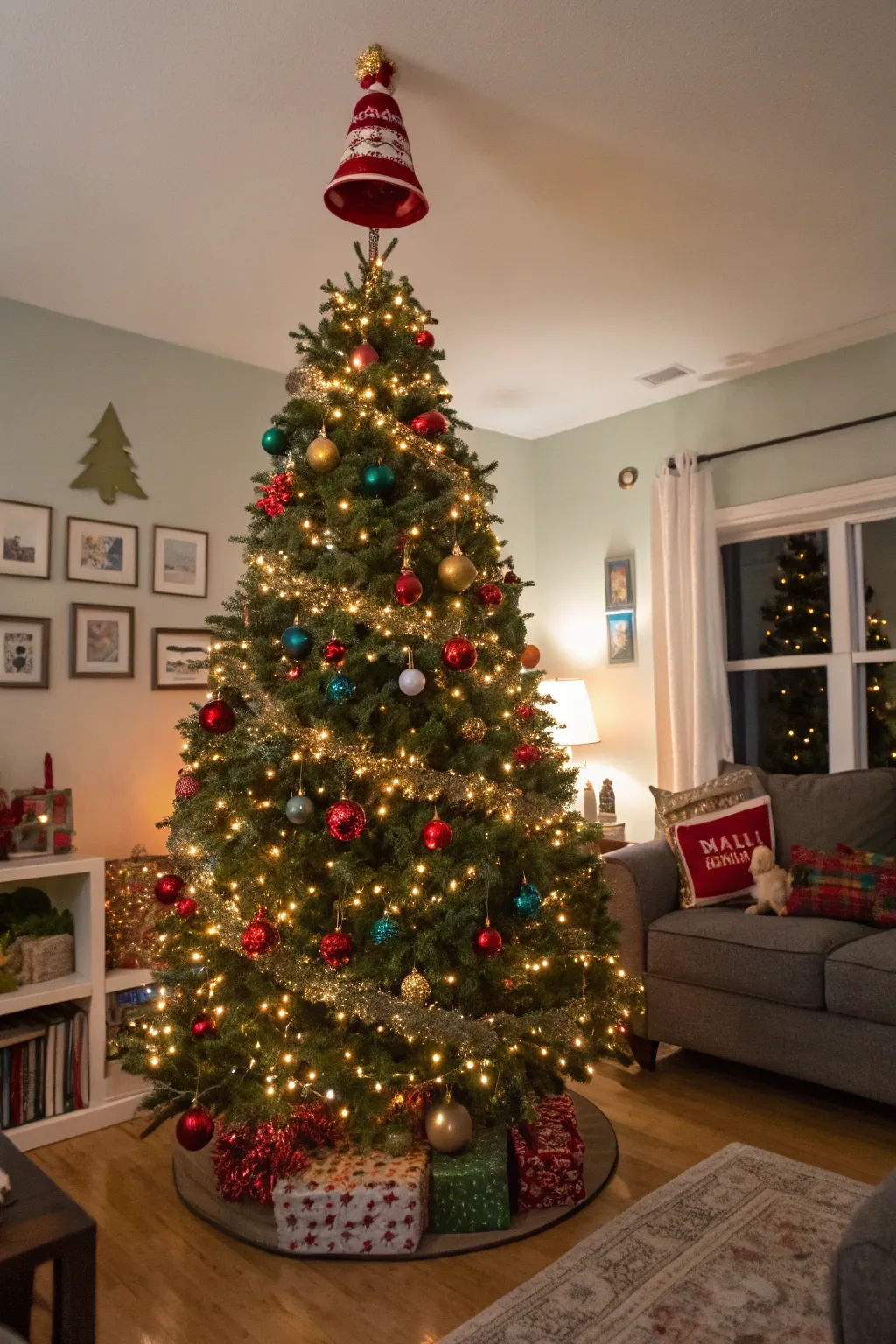 Oversized peal chimes create a striking impression atop your tree. They contribute a playful, melodious component that’s ideally suited for households with youngsters.