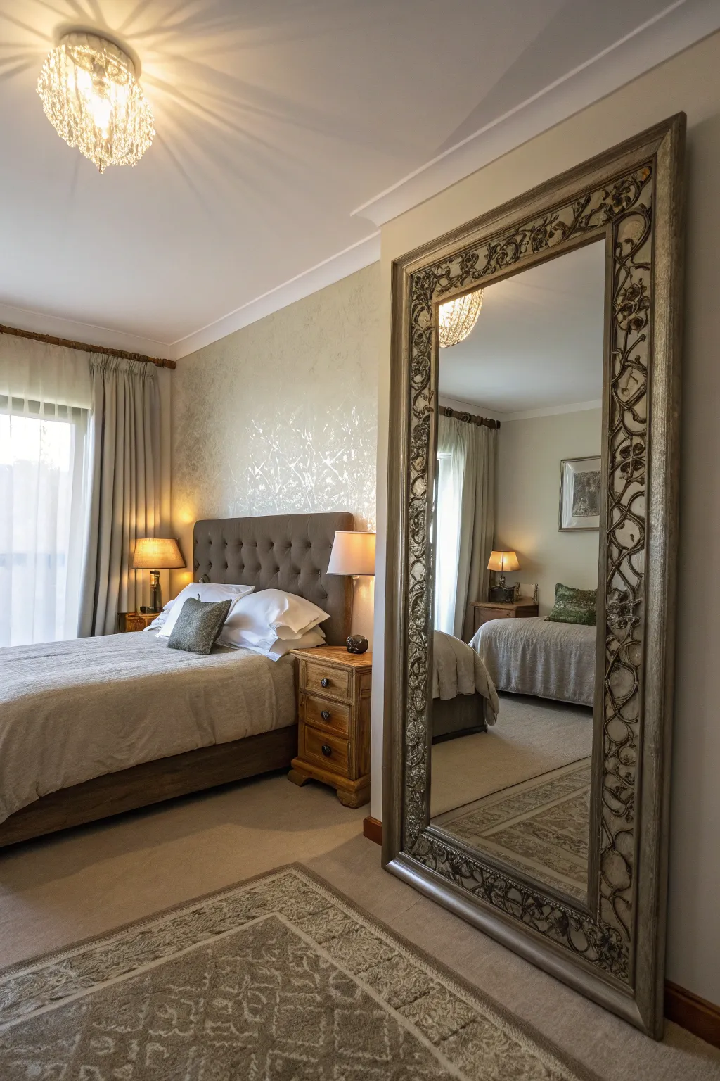 A ground covering can add a dimension of comfort and elevate the style of your bedroom. I prefer utilizing plush carpets or textured ground coverings to delineate specific zones and add a layer of warmness underfoot, enhancing comfort.