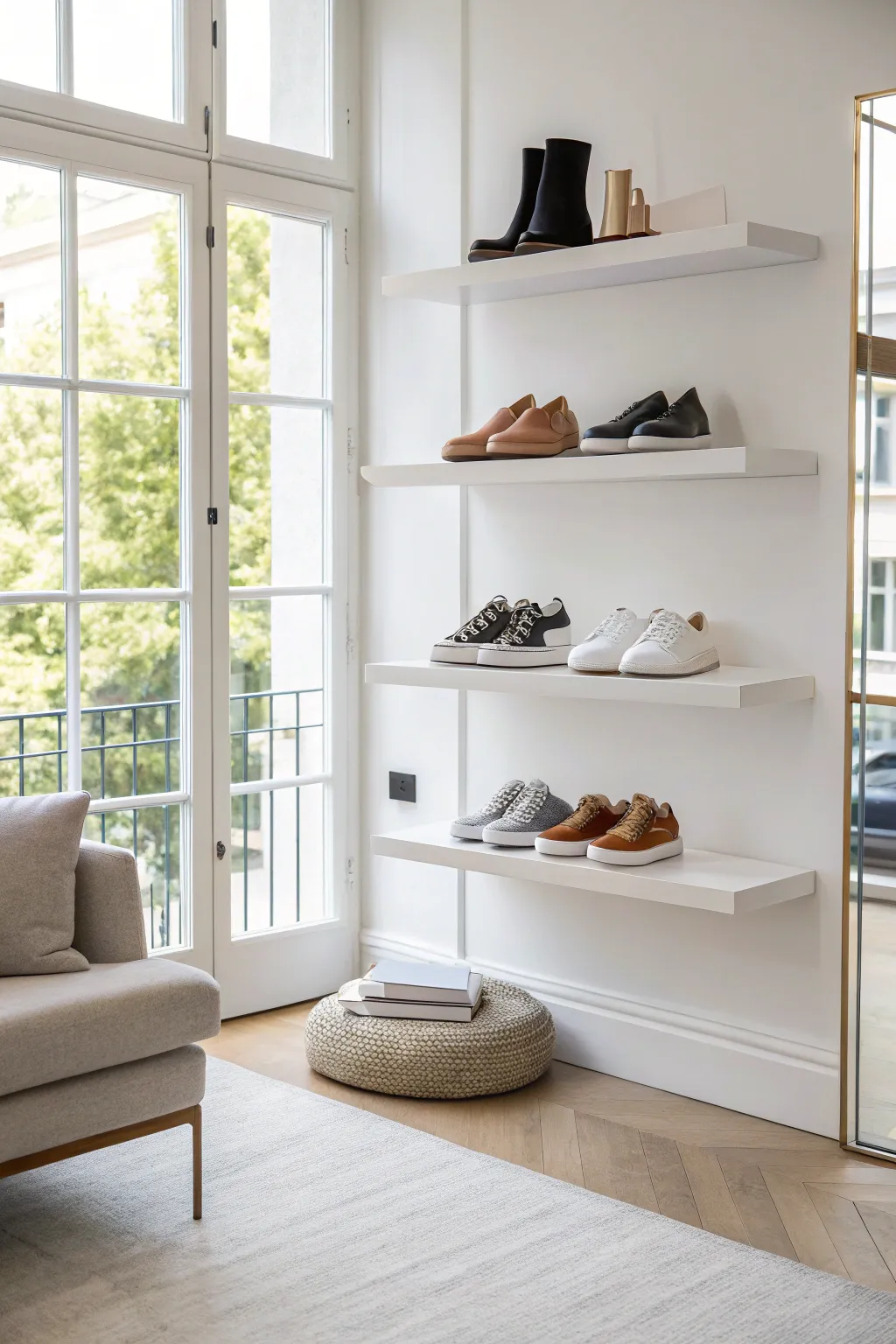 - Modern Drifting Wall Fixtures: Spruce up your area with smooth, modern drifting fixtures that beautifully showcase your footwear.