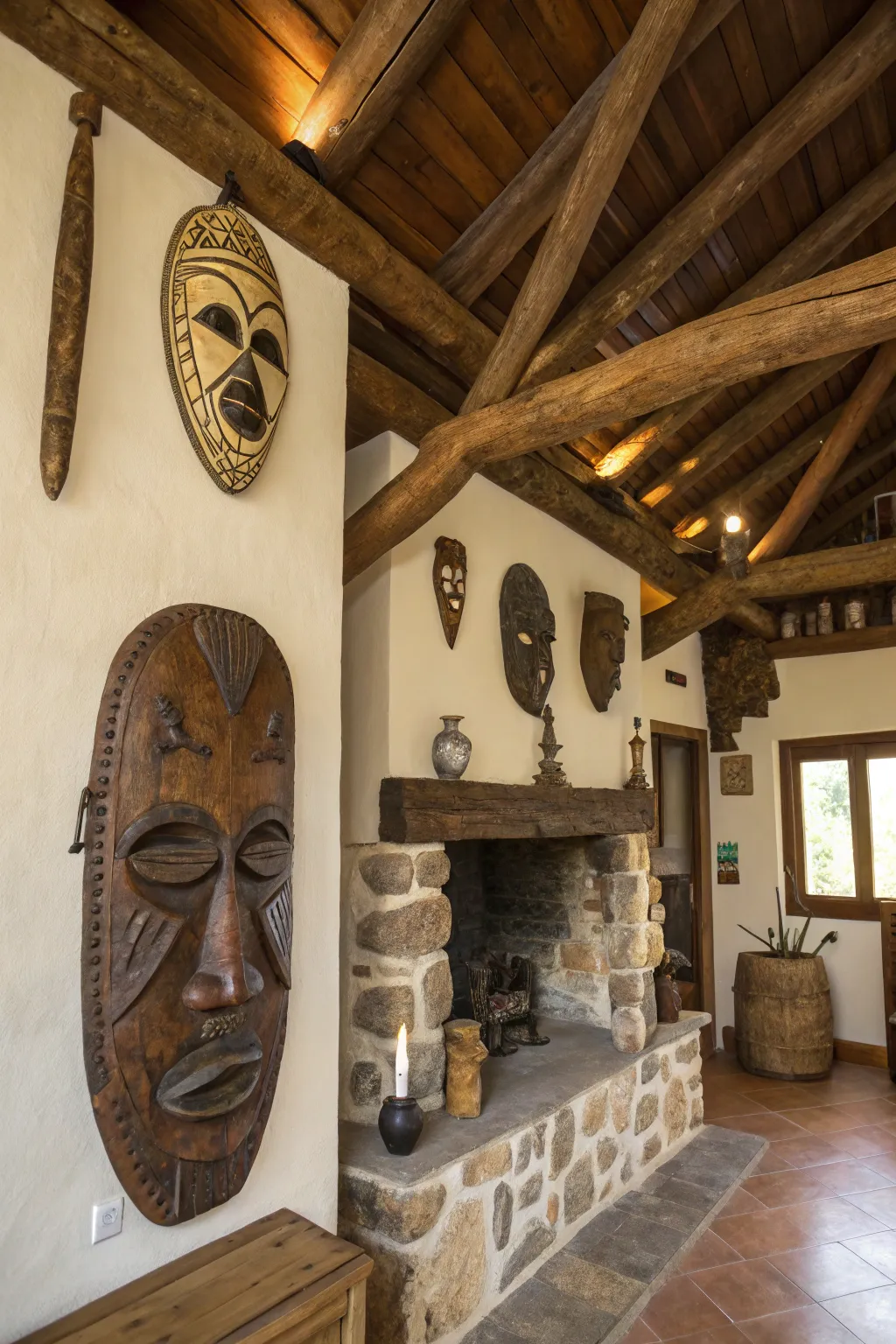 Revere cultural heritage through the exhibition of masks originating from assorted locales, encompassing African, Asian, and tribal designs. I’ve realized that this not only introduces beauty but also infuses a narrative dimension to any chamber.