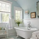 Introduce azure and gold linens and accessories to your restroom for a cheerful refresh. I adore how these colors can evoke a spa-like, welcoming atmosphere.